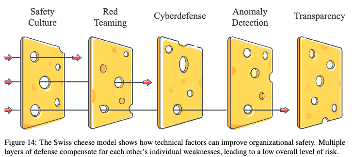 In the case of AI safety, Hendrycks et al. propose such a multilayered defense approach.1